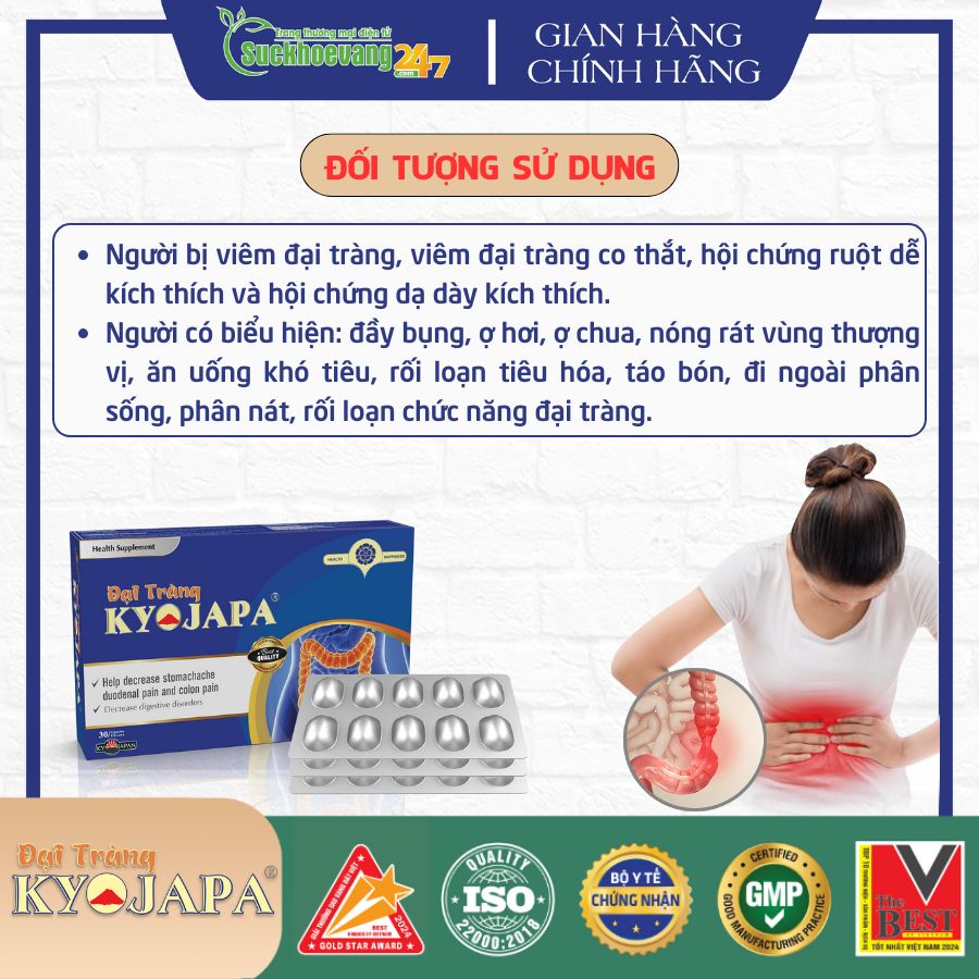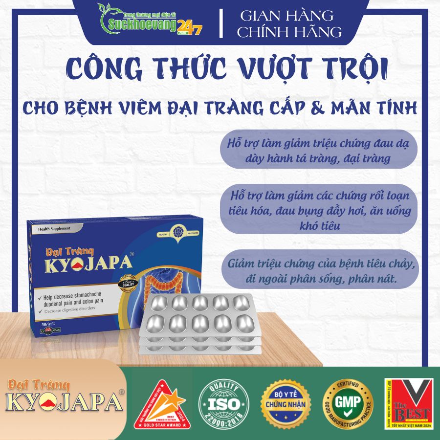 - Khi bị bệnh, lời khuyên cho bạn là hãy có sự thăm khám kịp thời tại các cơ sở y tế để có kết luận chính xác về bệnh. Song song với đó là kết hợp sử dụng sản phẩm đại tràng kyojapa sản phẩm được chiết xuất từ 100% dược liệu có nguồn gốc từ thiên nhiên hỗ trợ làm giảm các chứng đau dạ dày hành tá tràng, đại tràng, tổng thương niêm mạc dạ dày, đại tràng...