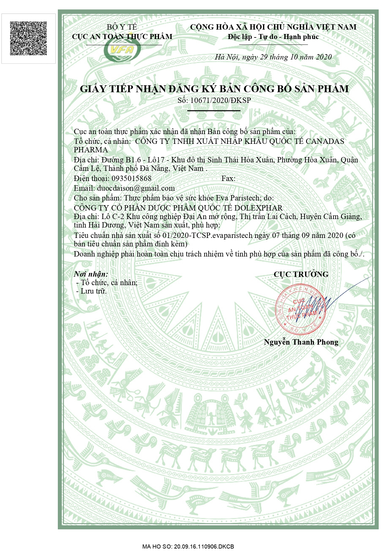 CÔNG BỐ SẢN PHẨM:
