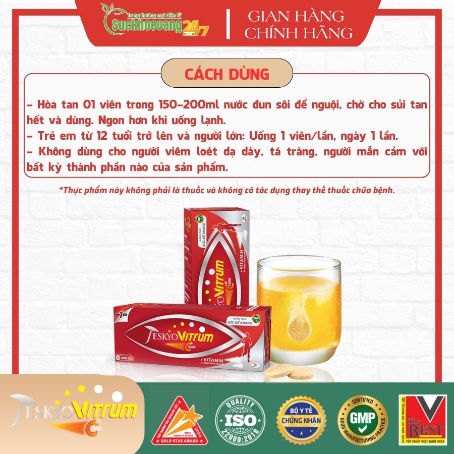 - Hòa tan 01 viên trong 150-200ml nước đun sôi để nguội, chờ cho sủi tan hết và dùng. Ngon hơn khi uống lạnh.