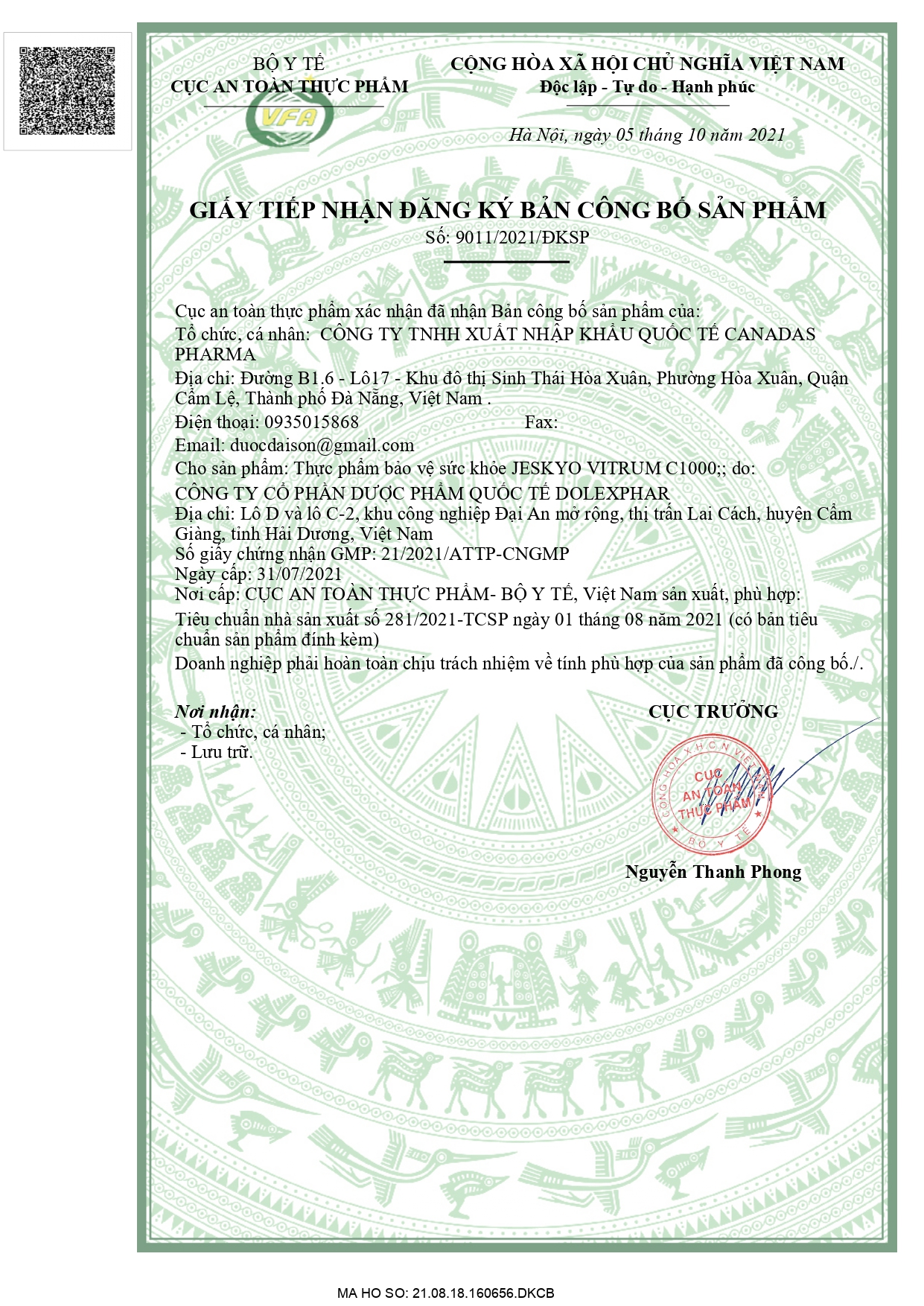 Vitamin C (Dạng sử dụng Acid L-ascorbic) ........................................... 1000 mg