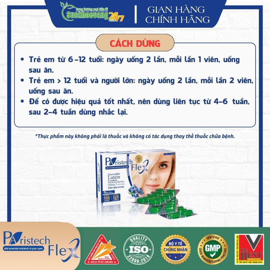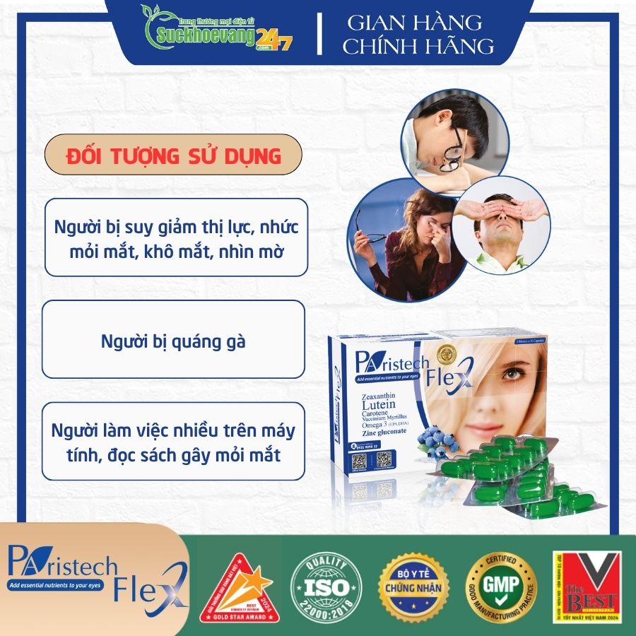 - Bổ sung các dưỡng chất cần thiết cho mắt, giúp tăng cường thị lực, làm giảm các triệu chứng nhức mắt, mỏi mắt, mờ mắt, khô mắt, giảm nguy cơ lão hóa mắt.