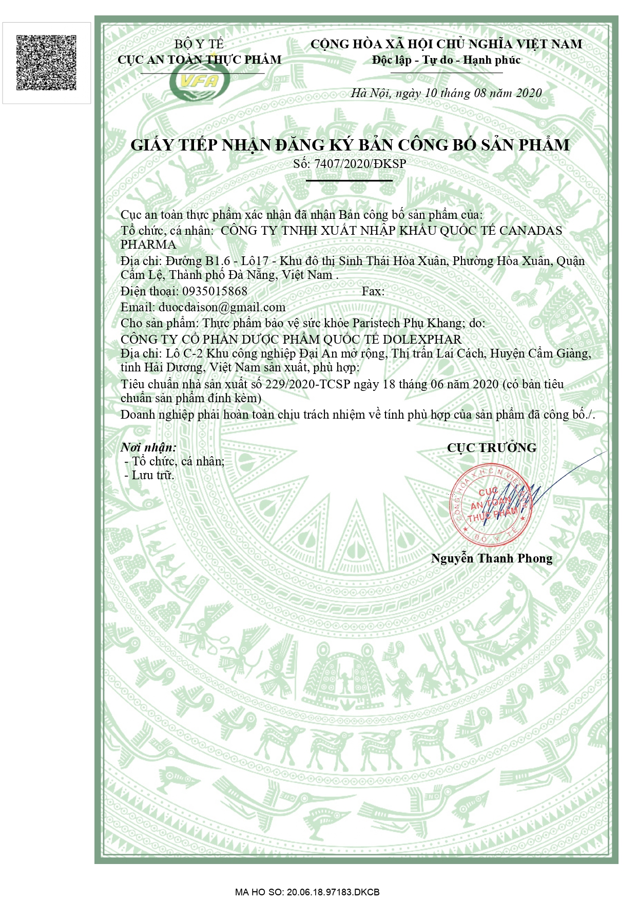 Số XNCB: 7292/2017/ATTP-XNCB.